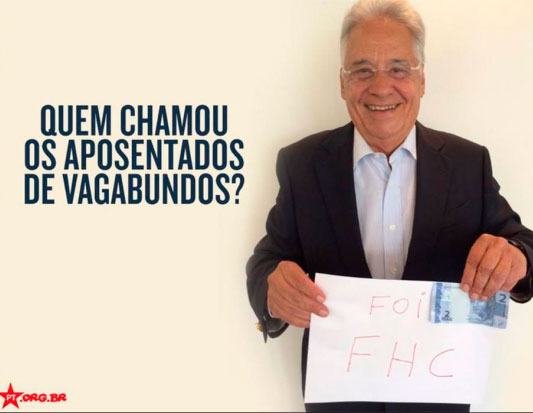 Em uma das versões divulgada pelo PT, aparece a pergunta "quem chamou os aposentados de vagabundos" ao lado do ex-presidente segurando o cartaz