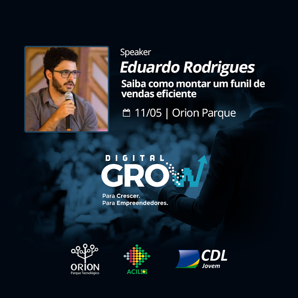 No dia 11 de maio o Orion Parque recebe um mega evento de Marketing Digital, o Digital Grow 1ª edição terá início as 18:50h. Grandes nomes do Marketing Digital como Contentools, Resultados Digitais, 1007 Brasil e Exact Sales estarão presentes para abordar as últimas tendências, estratégias e ferramentas que estão mudando como empresas geram resultados através da internet.