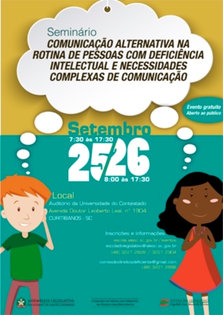 Inscrições: gratuitas pelo link http://escola.alesc.sc.gov.br/evento?eid=992